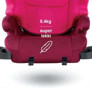 - Posiada złącza ISOFIX oraz przednie regulatory dla lepszego dopasowania do siedzenia samochodu.