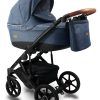 W skład zestawu wózka Bexa IDEAL NEW wchodzi: aluminiowy stelaż z żelowymi kołami i koszem na zakupy; gondola z budką i okryciem; siedzisko-spacerówka z budką i okryciem na nóżki;