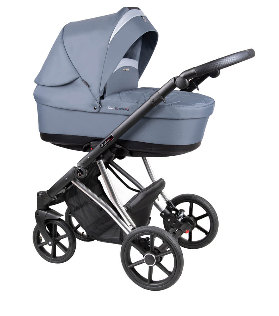 Prezentujemy nowy model wózka na unikatowej konstrukcji zaprojektowanej zgodnie najnowocześniejszymi trendami, który przykuwa uwagę wyjątkowym wzornictwem. Szczególną uwagę zwraca pikowane przykrycie na nóżki w gondoli z modnym, geometrycznym wzorem. W środku znajduje się wyściółka z miękkiej bawełny oraz materacyk kokosowy, który zapewnia odpowiednie podparcie dla kręgosłupa dziecka oraz gwarantuje wysoki poziom komfortu. Łatwy dostęp do wentylacji w budce oraz spodzie gondoli pozwoli zapewnić maluszkowi właściwą cyrkulację powietrza, zwłaszcza w gorące, letnie dni.