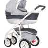 to wózek dla dzieci w wieku od 0-36 miesięcy. Uwodzi stylem i elegancją. Bardzo nowoczesna w formie jak i w rozwiązaniach technologicznych. Funkcjonalna, wykonana z bardzo dobrych gatunkowo materiałów, posiada ozdobną gondolę,która nadaje smak tej kompozycji. Koła pompowane – duże zamortyzowane sprawiają, iż jazda nim to nic innego jak przyjemność. Wygoda, komfort, płynność jazdy to jego cechy. Piękno i bezpieczeństwo
